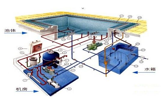 首先,三者在循環過濾方面存在著不同。傳統式的泳池水處理設備采用沙濾來進行過濾,一般采用單層或多層濾料進行過濾,一般采用30-45M/H的過濾速度。經過正常的過濾以后出水效果顯著,水池的濁度可以保持在5NTU以下,在對他清洗時,可以利用反清洗的方式,先進的閥體可以任意調節水流的方向以及運行的方式。但是過濾效果一般,而且最多用7、8年左右,就得重新換新的。里面的石英砂2年左右就得重新更換一次。維護起來還很麻煩。